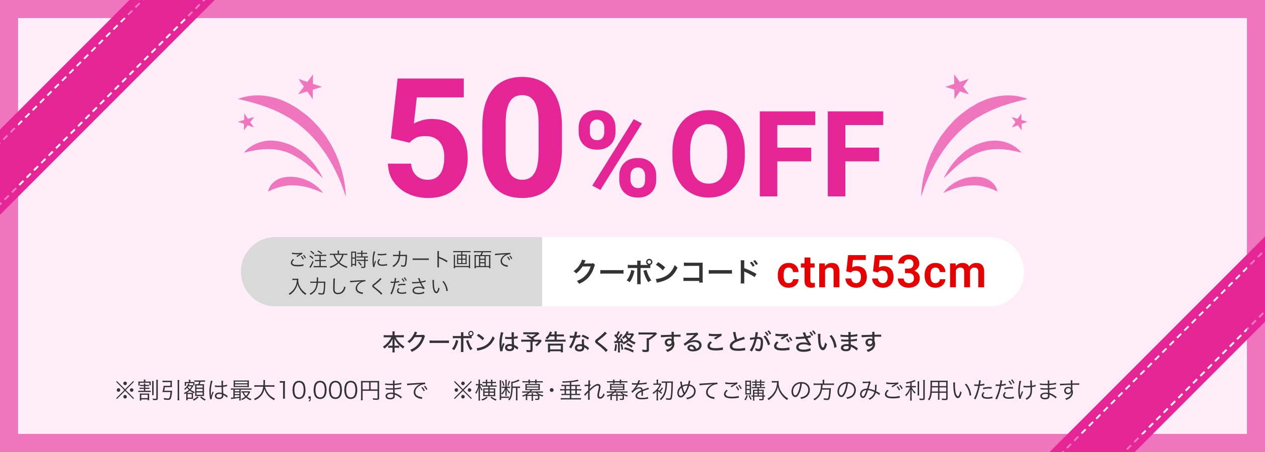 横断幕・垂れ幕印刷が今なら50%OFF